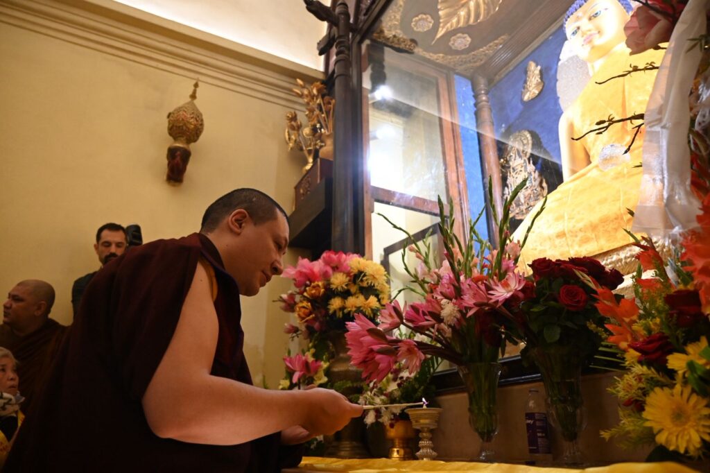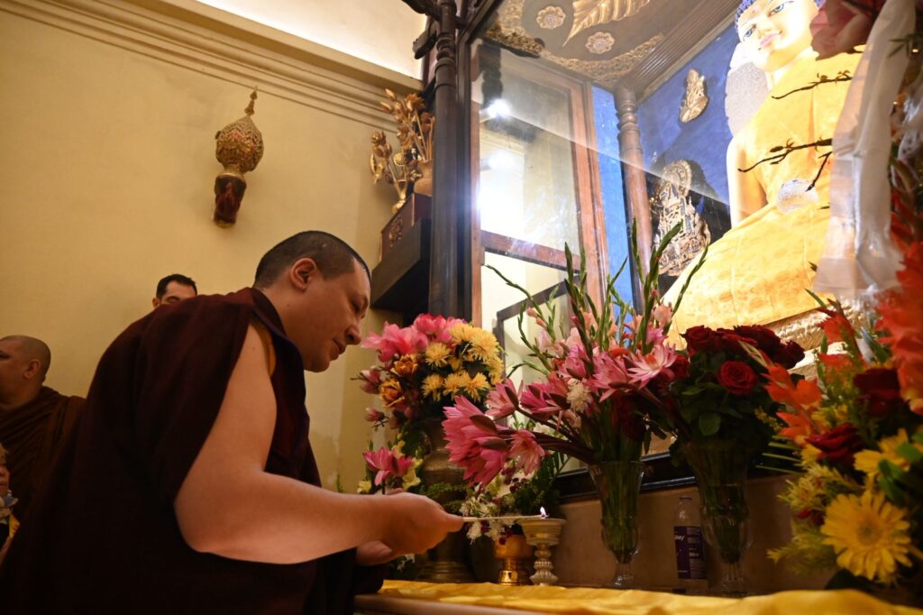 Thaye Dorje, His Holiness the 17th Gyalwa Karmapa head of the Karma Kagyu lineage of Tibetan Buddhism visited the Mahabodhi Temple this morning to conduct the 23rd Kagyu Monlam, taking place under the Bodhi Tree in the premises of the Mahabodhi Temple, Bodh Gaya which commenced from 15th December and continue till 21 December 2025. Ven. Bhikkhu Chalinda, Chief Monk of the Mahabodhi Temple received His Holiness on arrival and escorted His Holiness to the Main Shrine of the Temple.