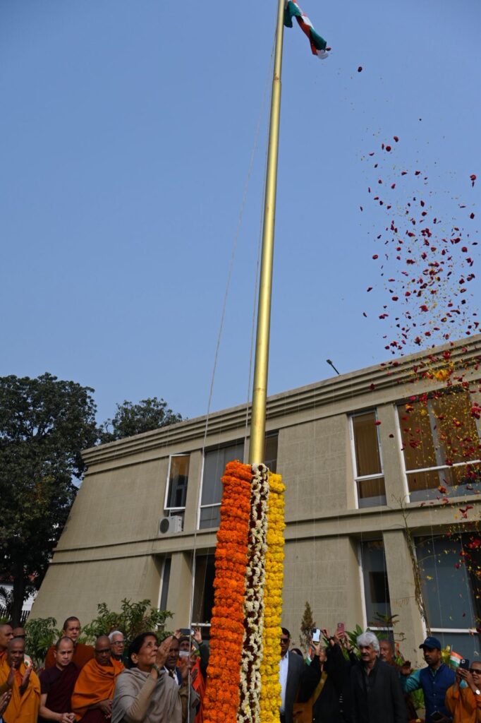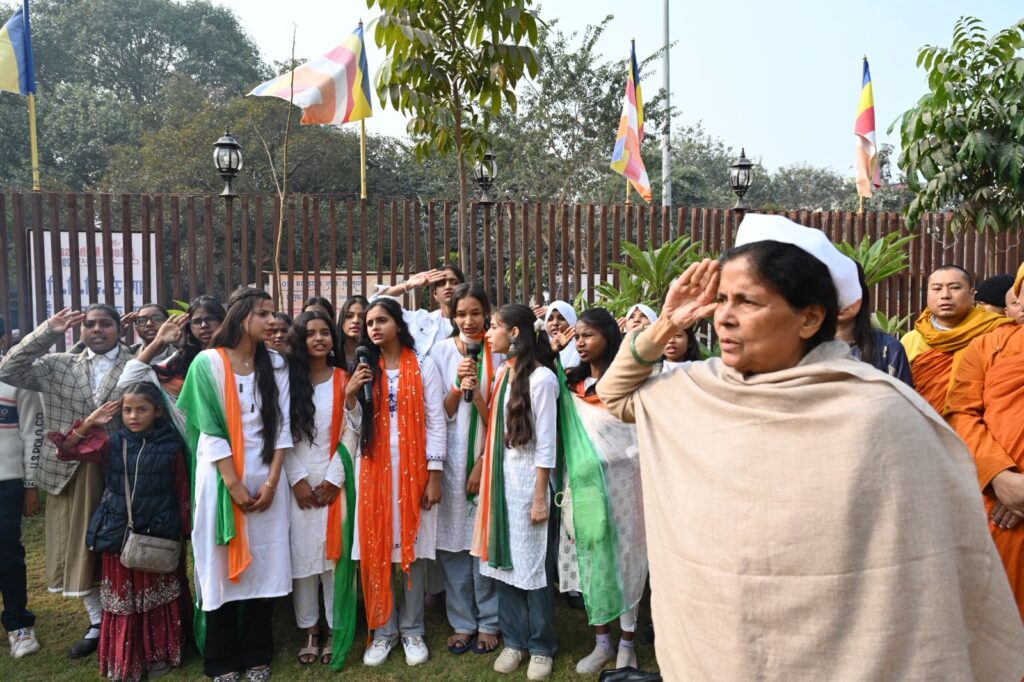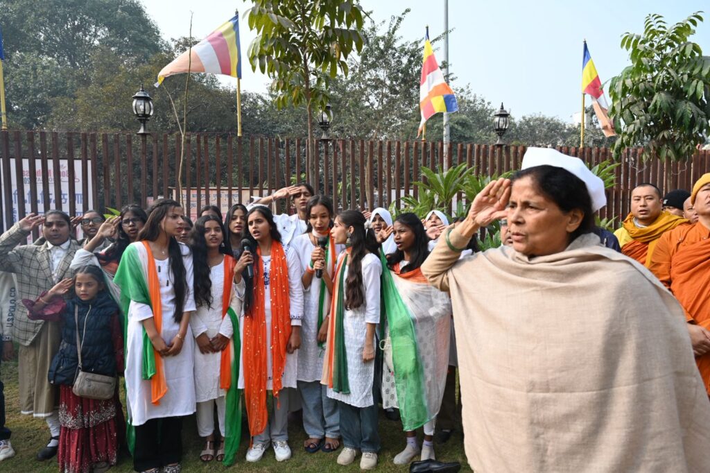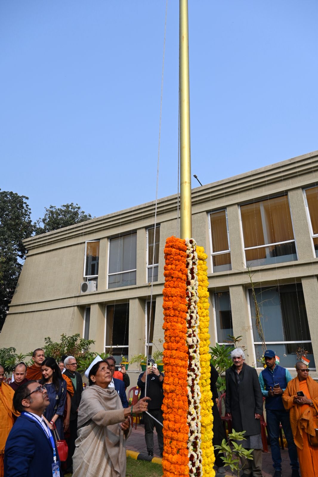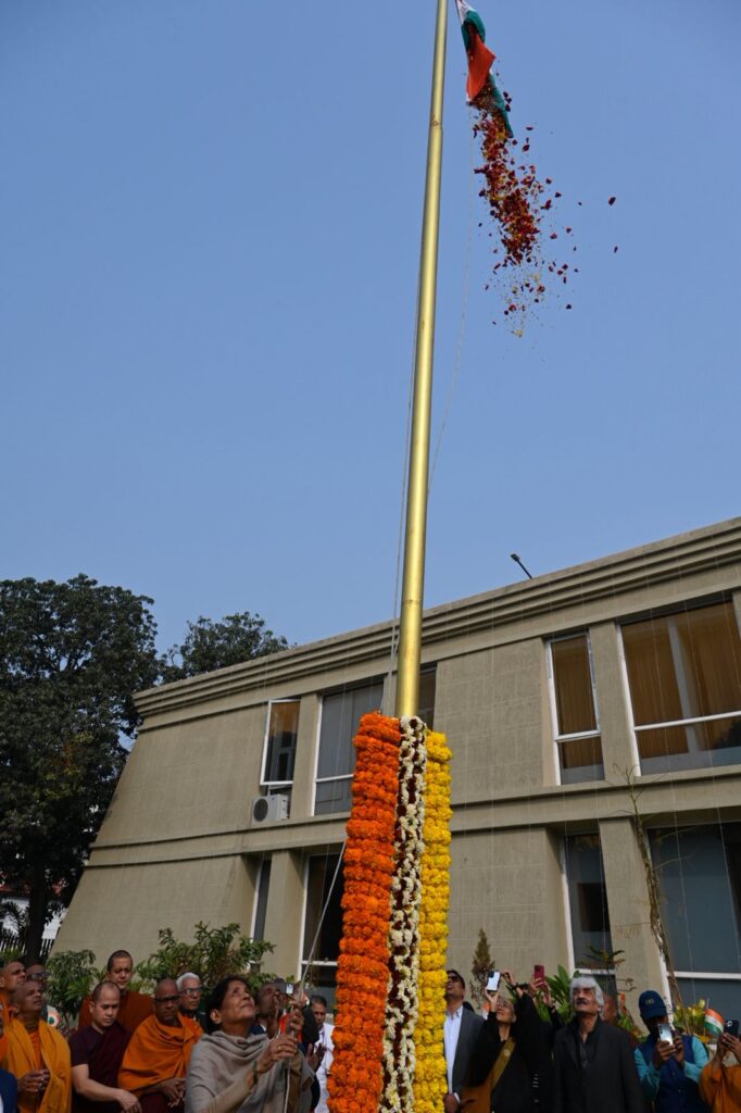 The National Flag was ceremonially hoisted by Dr. Mahashweta Maharathi, Secretary, BTMC, in the presence of BTMC Members, office staff, monks from various monasteries, and other dignitaries. In her address, the member secretary recalled the progress the nation has made in its 77 year journey of India’s republic. She said, “ from making salt to Chandrayan; from green to white revolution; from education to digitalization, india has made great strides and made overall development.” She recalled that the republican system evolved not in Greece but in Vaishali during the time of Buddha and Licchavis. She also referred to the relic stupa, which was built at the initiative of the CM Nitish Kumar, which houses one-eight of the Buddha relics, kept in Patna Museum for 78yeard. She encouraged the youth to stand and work unitedly for making the country ever so strong and developed. She recalled Dr Bhimrao Ambedkar’s contribution for writing of the constitution. The occasion reflected unity, respect for the Constitution, and the spirit of national pride.