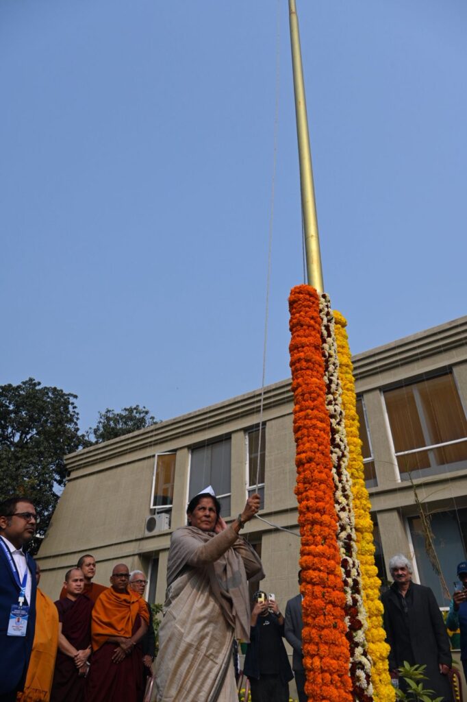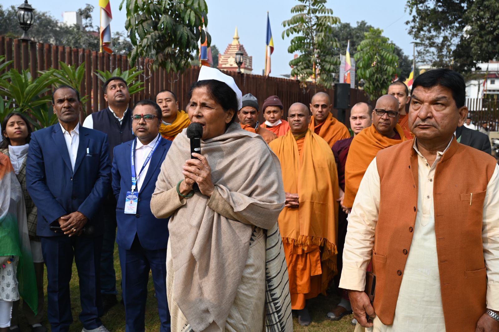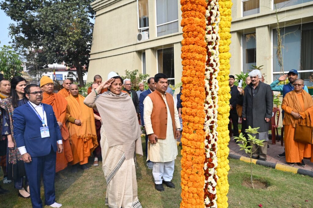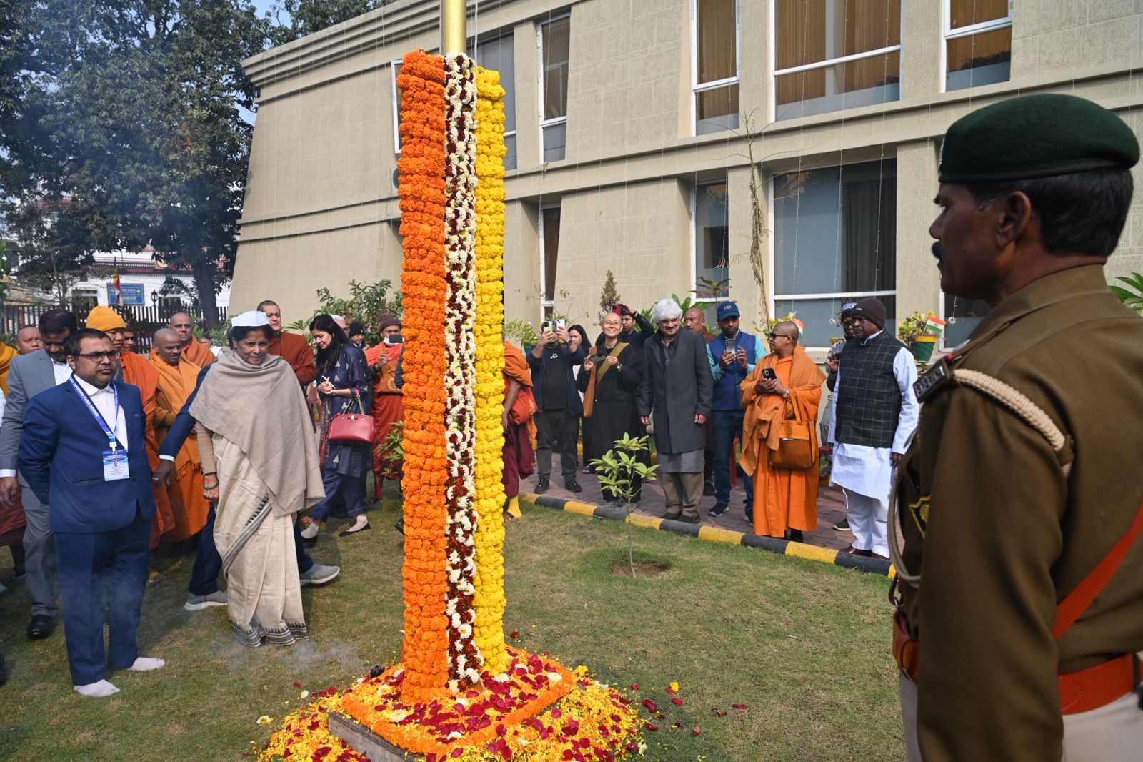 The National Flag was ceremonially hoisted by Dr. Mahashweta Maharathi, Secretary, BTMC, in the presence of BTMC Members, office staff, monks from various monasteries, and other dignitaries. In her address, the member secretary recalled the progress the nation has made in its 77 year journey of India’s republic. She said, “ from making salt to Chandrayan; from green to white revolution; from education to digitalization, india has made great strides and made overall development.” She recalled that the republican system evolved not in Greece but in Vaishali during the time of Buddha and Licchavis. She also referred to the relic stupa, which was built at the initiative of the CM Nitish Kumar, which houses one-eight of the Buddha relics, kept in Patna Museum for 78yeard. She encouraged the youth to stand and work unitedly for making the country ever so strong and developed. She recalled Dr Bhimrao Ambedkar’s contribution for writing of the constitution. The occasion reflected unity, respect for the Constitution, and the spirit of national pride.