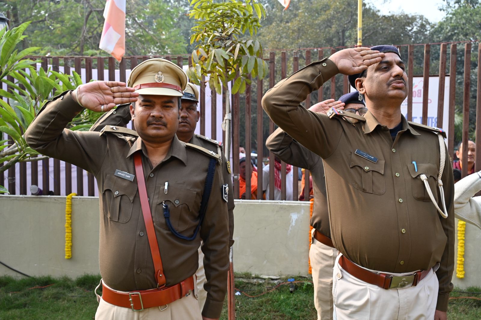 During the flag hoisting ceremony, security personnel rendered the ceremonial salute, followed by the singing of the National Anthem, which was beautifully rendered by school students, adding solemnity to the event.