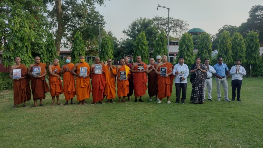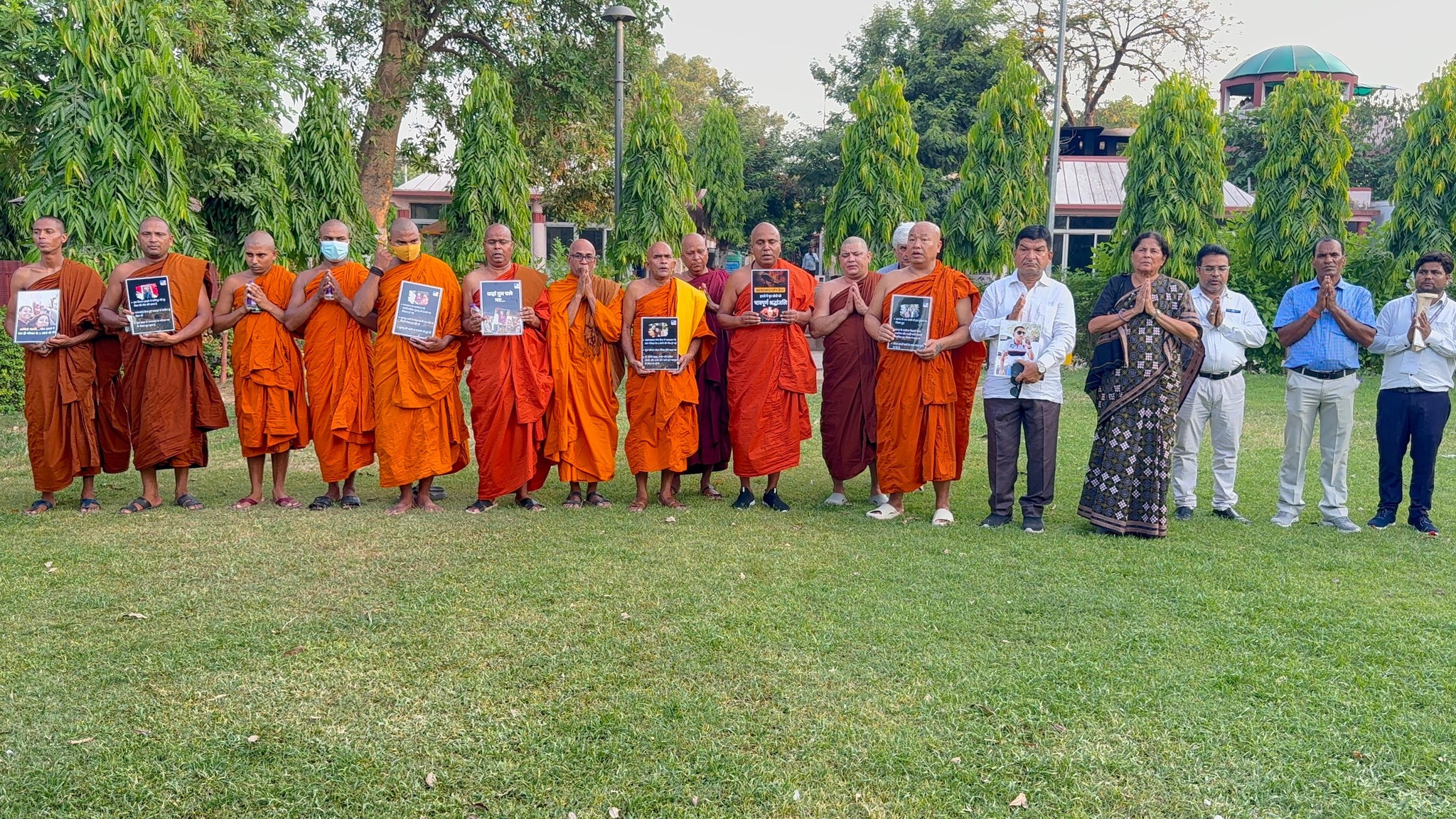 The Bodhgaya Temple Management Committee (BTMC) held a prayer ceremony and lamp offering on June 13, 2025 at 5:30 PM in front of the Butter Lamp House at the Mahabodhi Temple to honour the memory of the victims of the tragic Air India flight crash in Ahmedabad. The ceremony was attended by Bhikkhu Chalinda, Chief Monk of BTMC, Bhikkhu Dr. Manoj, Senior Monk of BTMC, and other senior monks from various monasteries. Dr. Mahashweta Maharathi, Secretary of BTMC, Dr. Arvind Singh, Member of BTMC, along with BTMC staff and members of the Bodhgaya community, participated in this solemn tribute to offer prayers for the departed souls and support for their families. The lamp offering symbolizes peace, hope, and solidarity in the wake of this tragedy. The BTMC invited all to join in this moment of remembrance and compassion.