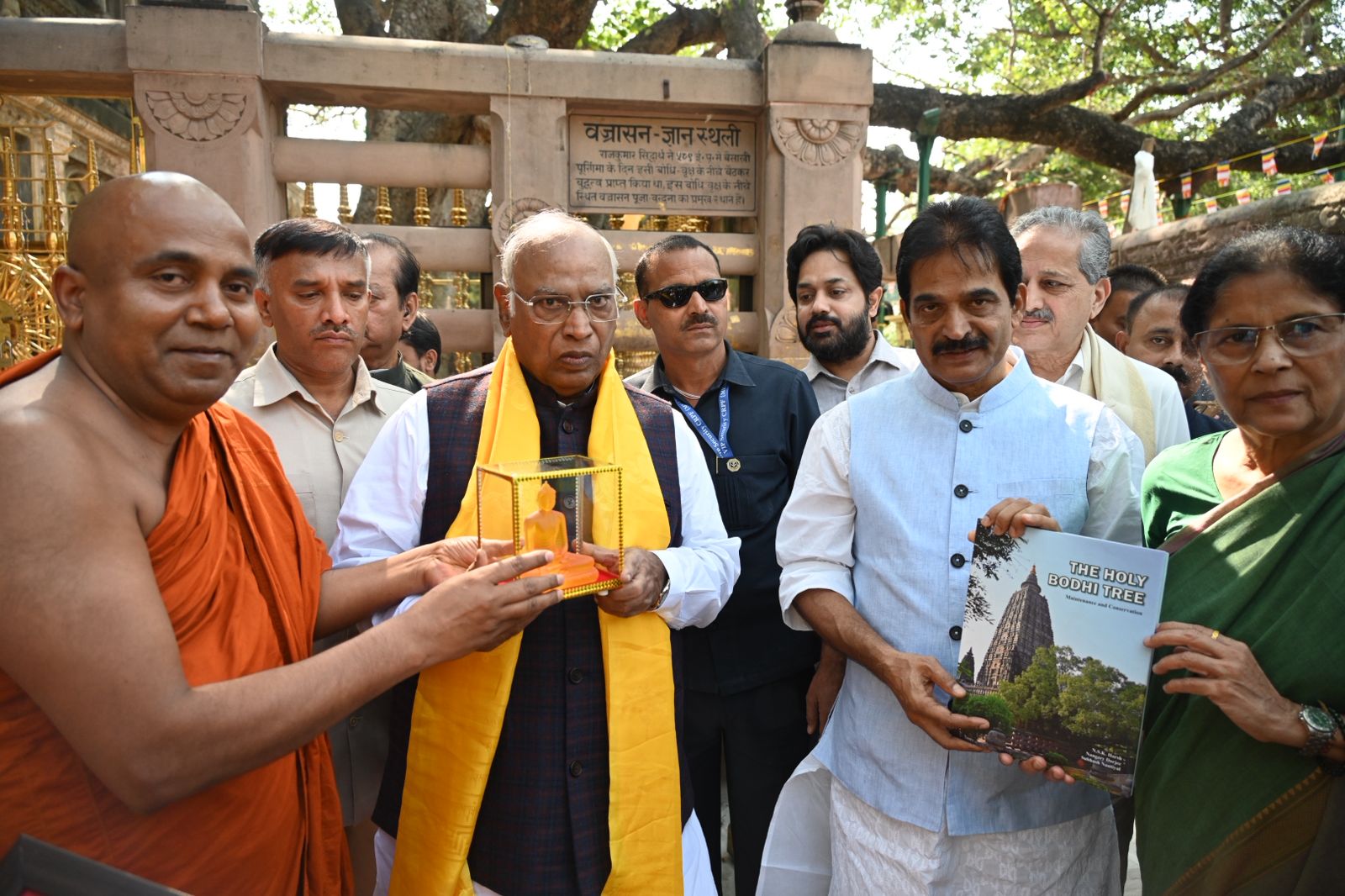 Accompanied by the monastic dignitaries, Shri Kharge offered prayers at the main shrine, the sanctum sanctorum housing the statue of Lord Buddha. The delegation then proceeded to the ancient and revered Bodhi Tree, under which Lord Buddha attained enlightenment. In a solemn and spiritually charged atmosphere, the Venerable Monks chanted sacred mantras, invoking blessings and peace for Shri Kharge.