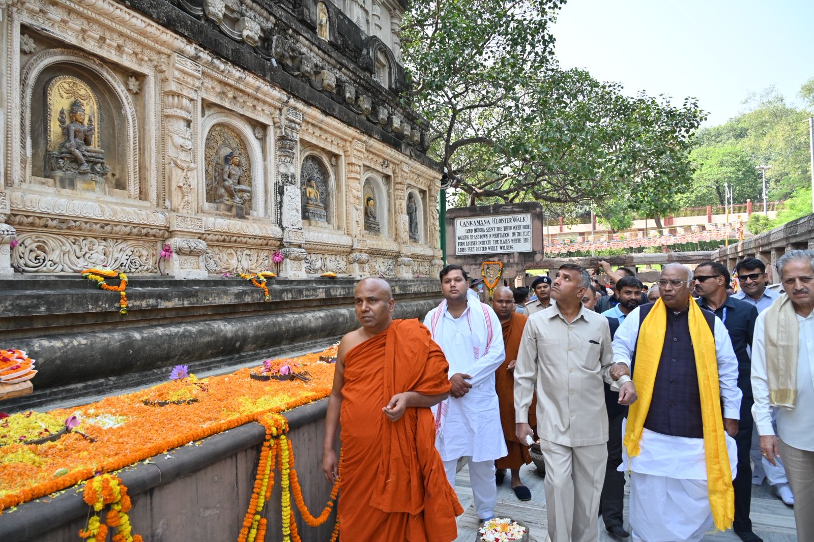 Shri Mallikarjun Kharge, President of the Indian National Congress and Leader of the Opposition in the Rajya Sabha along with Shri K.C. Venugopal, MP& General Secretary (Organization), AICC , paid a reverential visit to the UNESCO World Heritage Site, the Mahabodhi Mahavihara Temple, in Bodhgaya this morning.