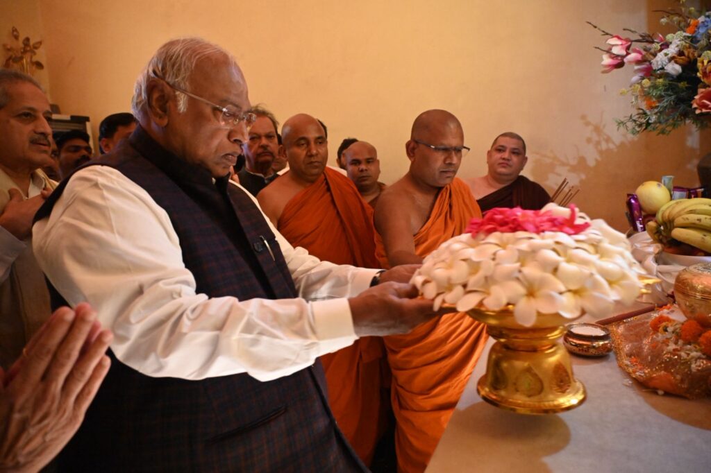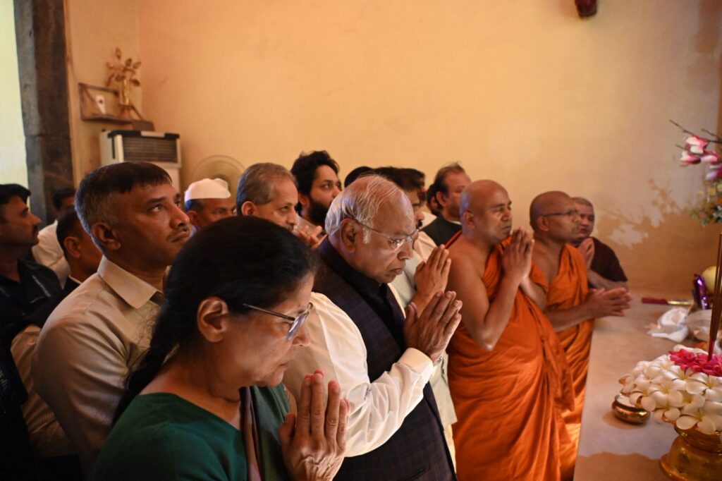 Upon his arrival at the sacred temple complex, Shri Kharge was accorded a traditional and heartfelt welcome. He was greeted with ceremonial ‘Khada’ scarves by Dr. Mahasweta Maharathi, Secretary of the Bodhgaya Temple Management Committee (BTMC), along with esteemed monks Bhikkhu Dr. Deenanand and Bhikkhu Dr. Manoj.