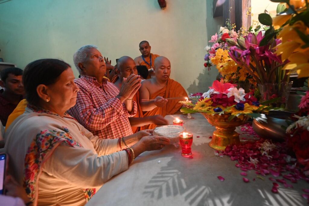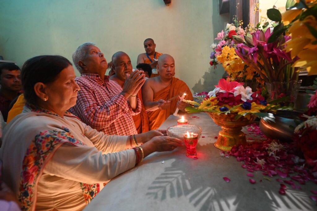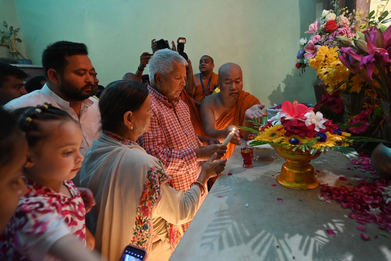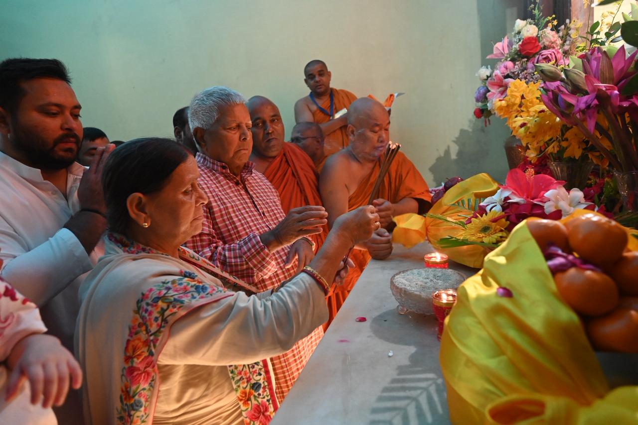 Within the sanctum sanctorum of the Mahabodhi Temple, the dignitaries lit lamps and offered flowers, following which the monks performed a special chanting of mantras, invoking blessings upon Shri Lalu Prasad Yadav and his family members. They were then taken around the temple complex, including a visit to the sacred Bodhi Tree.