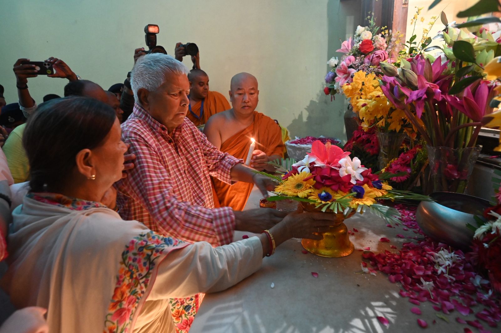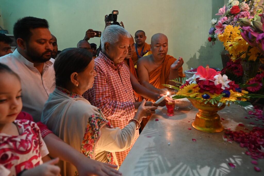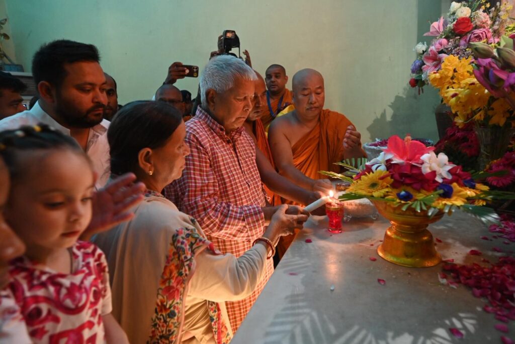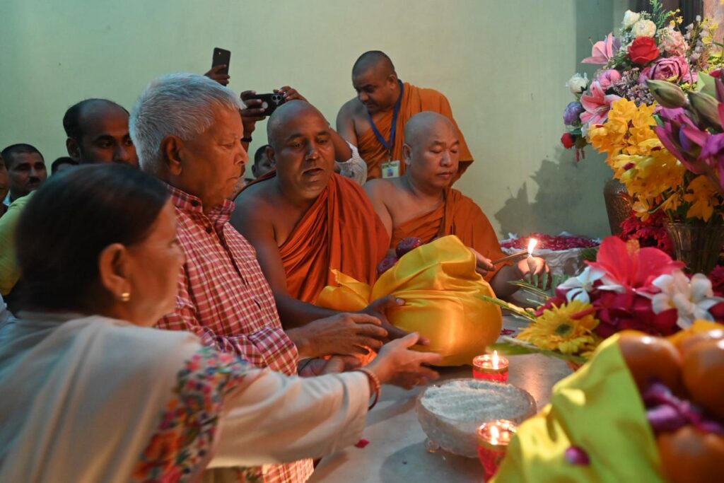 Within the sanctum sanctorum of the Mahabodhi Temple, the dignitaries lit lamps and offered flowers, following which the monks performed a special chanting of mantras, invoking blessings upon Shri Lalu Prasad Yadav and his family members. They were then taken around the temple complex, including a visit to the sacred Bodhi Tree.