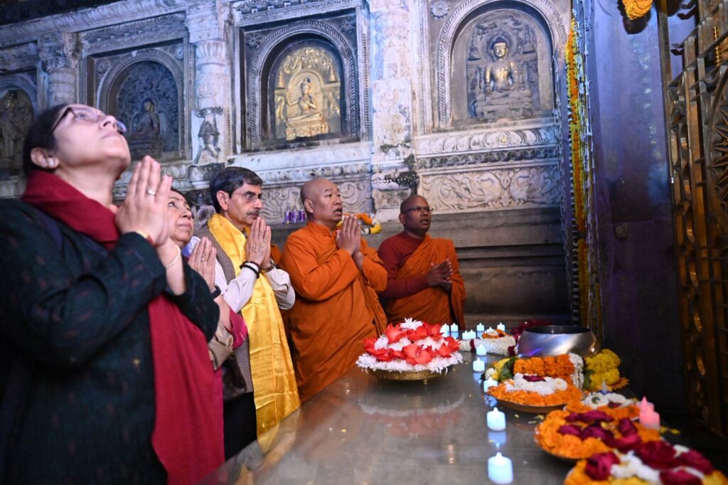 Shri R. N. Ravi, Hon’ble Governor of Tamilnadu along with his wife and Daughter , paid a reverential visit to the UNESCO World Heritage Site, the Mahabodhi Mahavihara Temple, in Bodhgaya this evening.