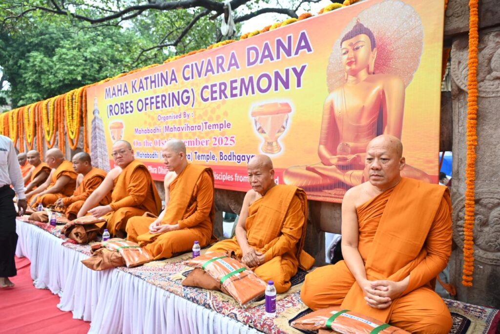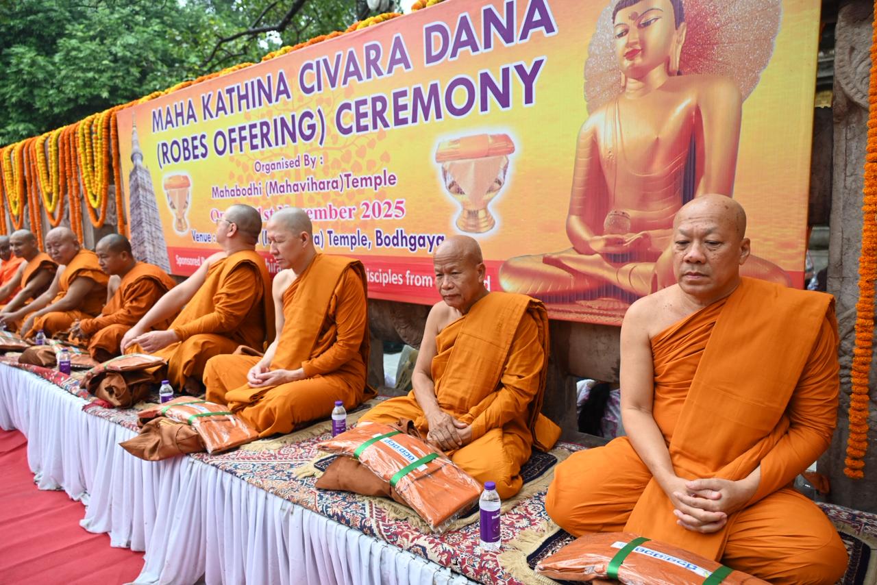 The Maha Kathina Cīvara Dāna Ceremony was observed with solemn devotion beneath the sacred Bodhi Tree at the Mahabodhi Mahāvihāra Temple, Bodhgaya — the holiest site marking the Enlightenment of Lord Buddha.
