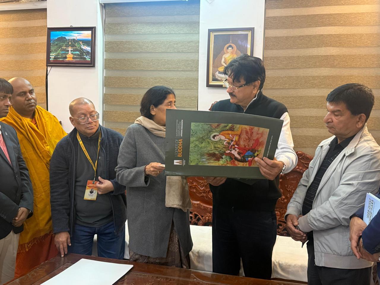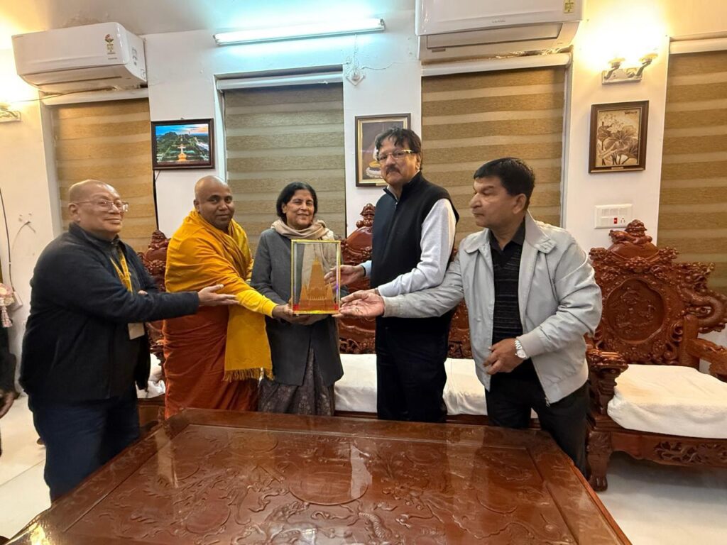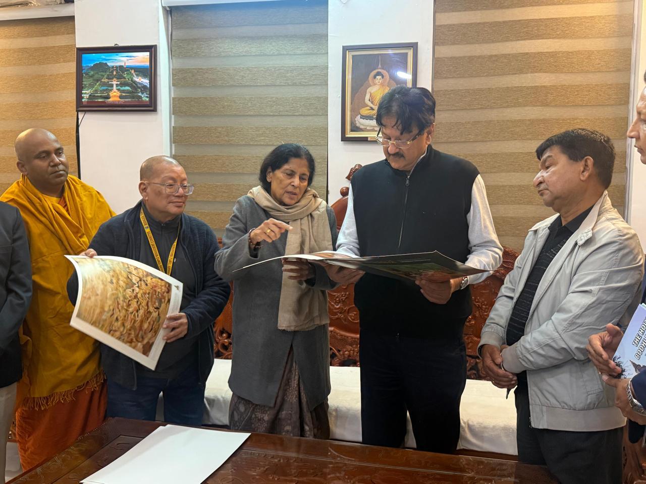 Mementos, including a Replica of the Mahabodhi Temple, a Bodhi Leaf, Publications of the BTMC – The Bodhi Tree and The Legends of Buddha, an art portfolio were presented to Mr. Piramal on this occasion.