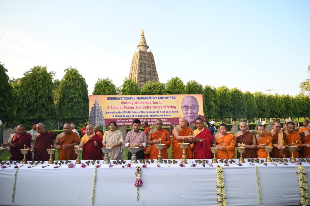 Bodhgaya, 6th July 2025 — The Bodhgaya Temple Management Committee (BTMC) organised a Special Prayer and 1000 Butterlamps Offering on the sacred premises of the Mahabodhi Temple (Mahavihara) on Sunday evening to celebrate the 90th Birthday of His Holiness the 14th Dalai Lama, revered globally as a beacon of compassion, wisdom, and peace.