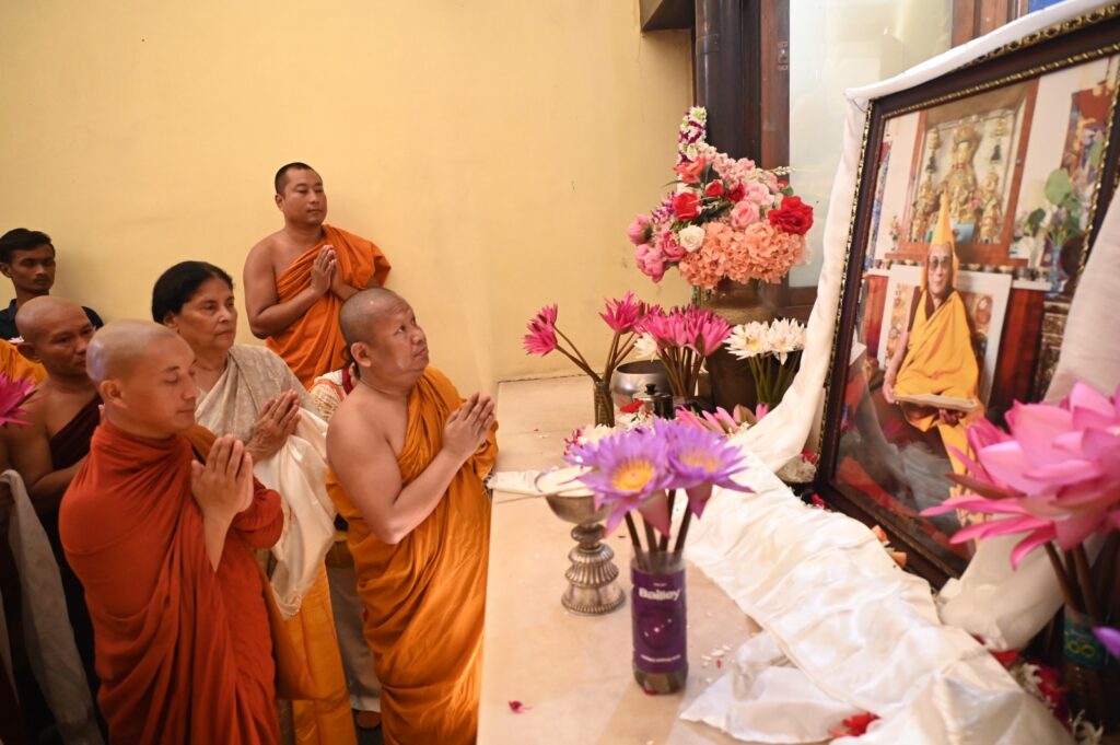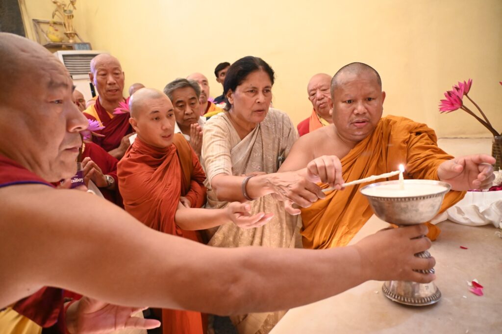 The solemn event, held at 5:30 pm, witnessed the participation of Venerable Bhikkhus and Lamas from various Buddhist monasteries in Bodhgaya. The Chief Monk of the Mahabodhi Temple, Ven. Bhikkhu Chalinda, and Ven. Bhikkhu Dinanand led the ceremonial observance with deep spiritual reverence.