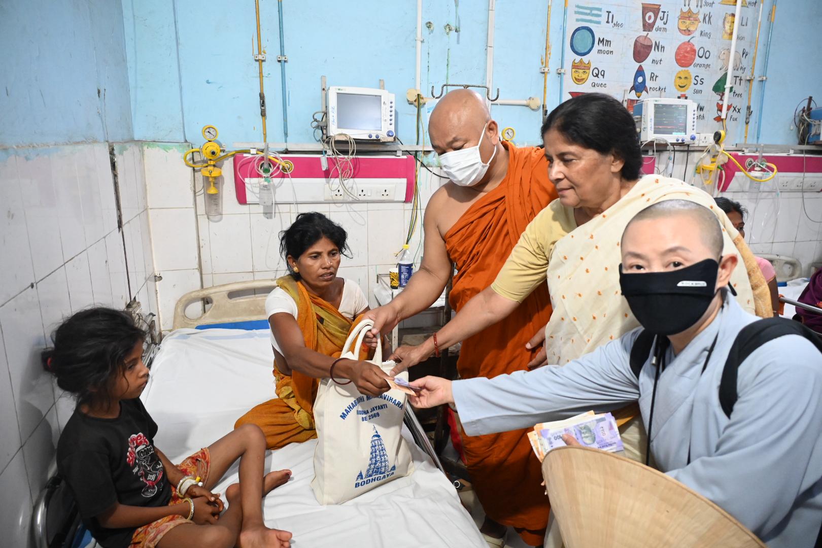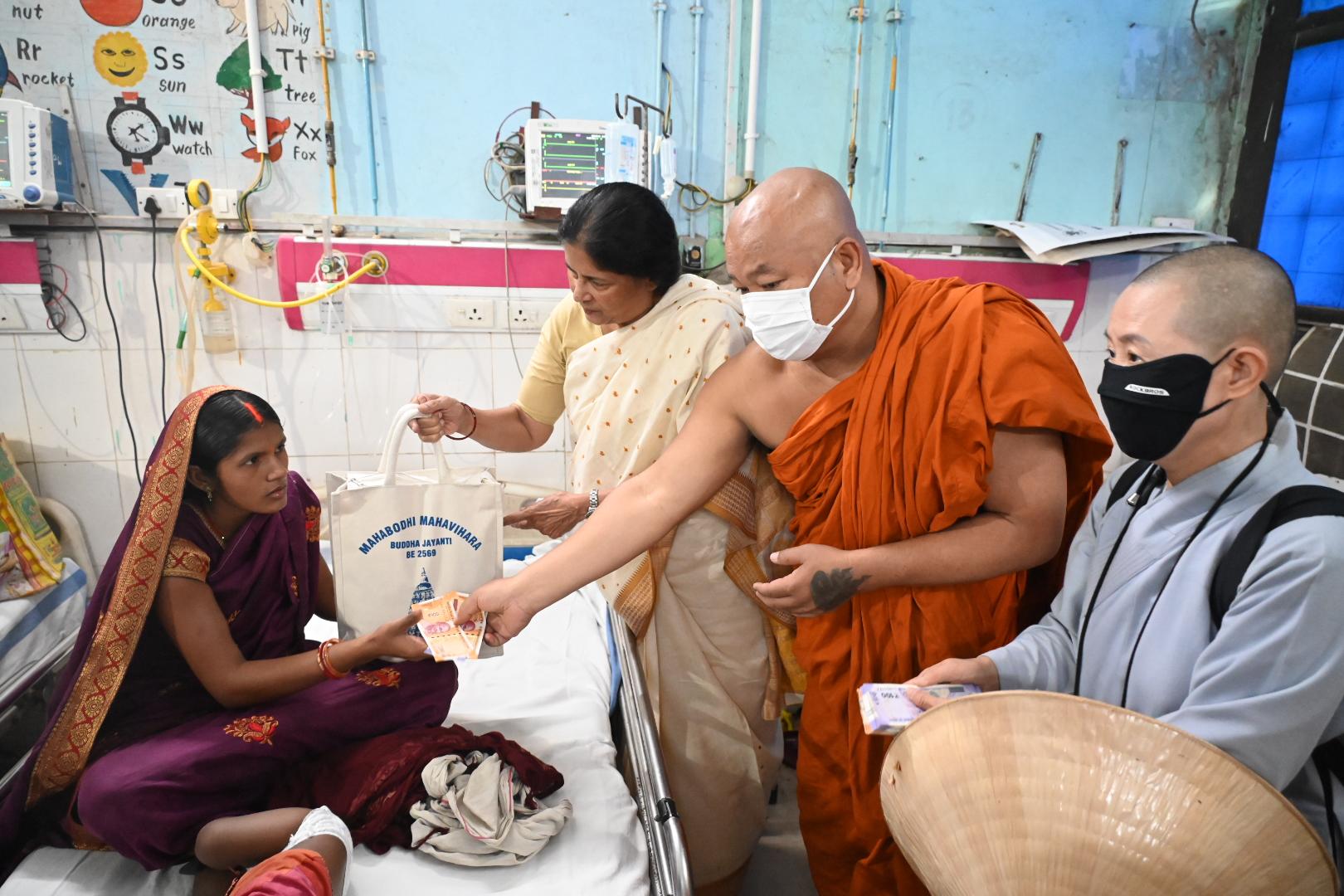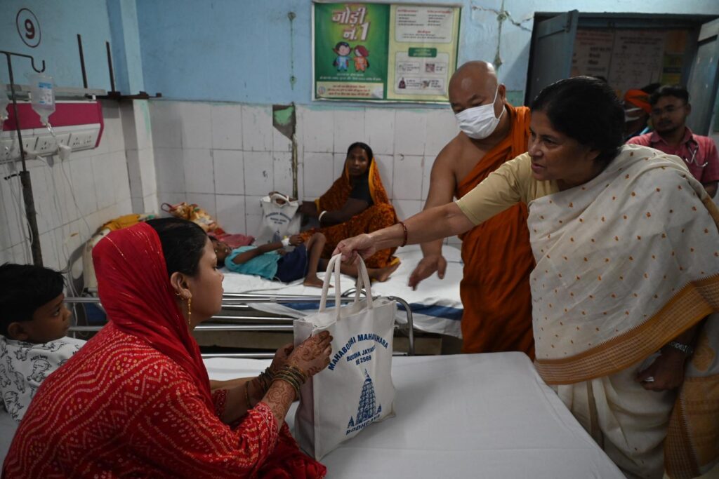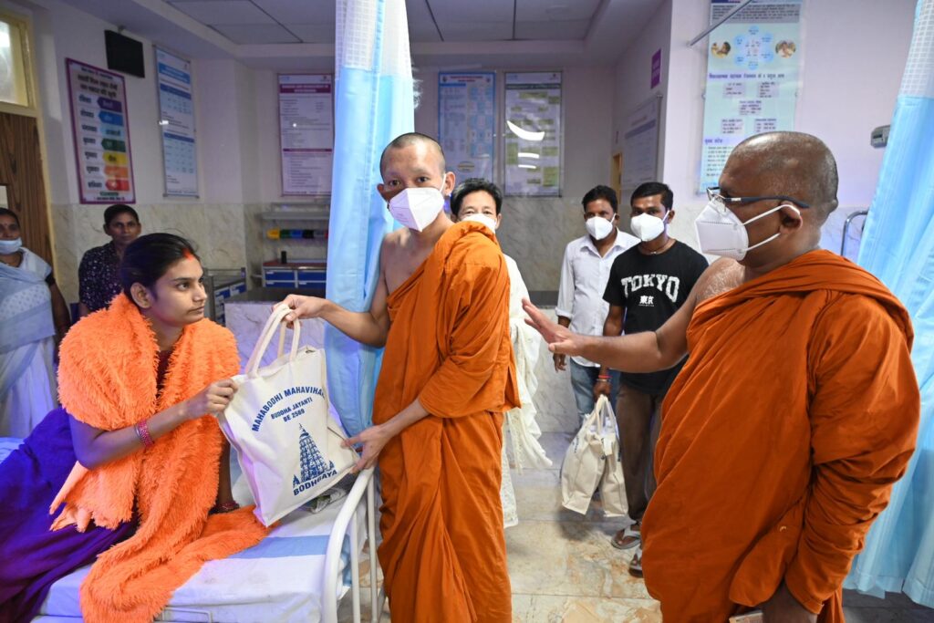 The importance of offering succour to the needy is a central tenet of Buddhism and can never be overstated. Since ancient times, Dāna—the act of giving—has been revered as a Pāramitā, or supreme virtue. In keeping with this noble tradition, the Bodhgaya Temple Management Committee (BTMC) distributed bags of prasad to patients at A.N. Magadh College Hospital, Prabhavati Hospital, and Pilgrim Hospital, a day after the Buddha Purnima celebrations at the Mahabodhi Mahavihara.