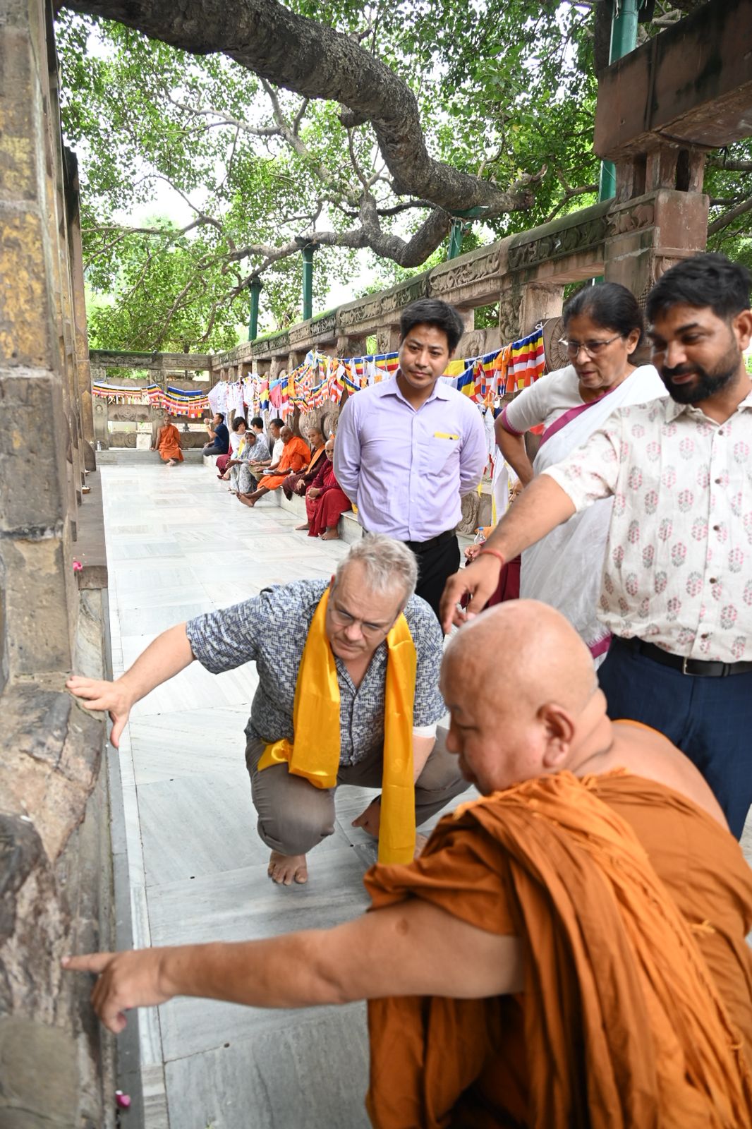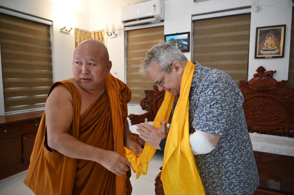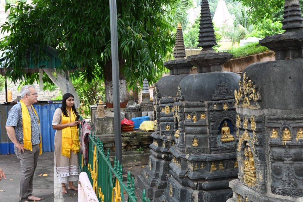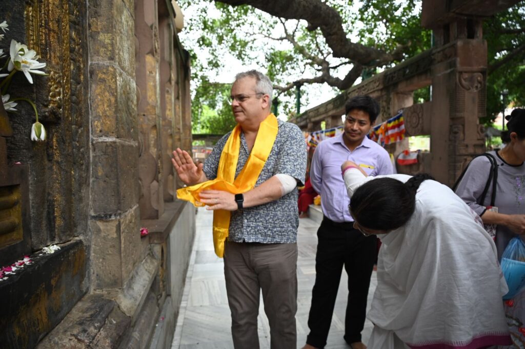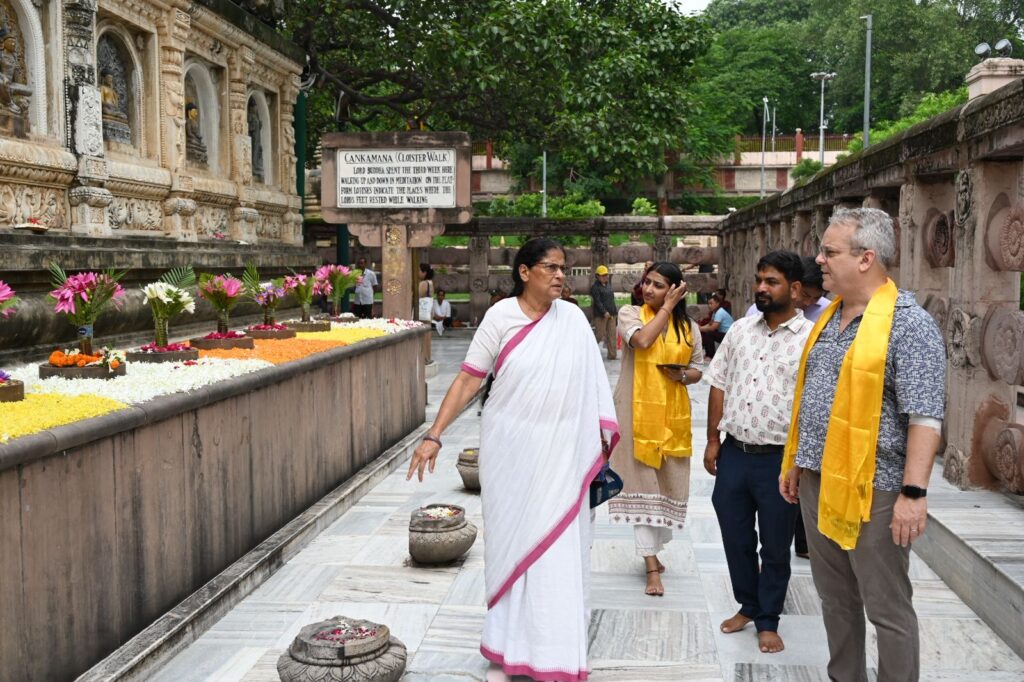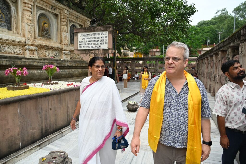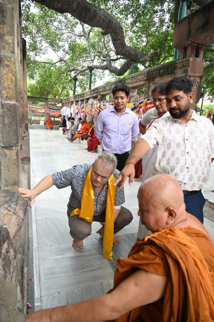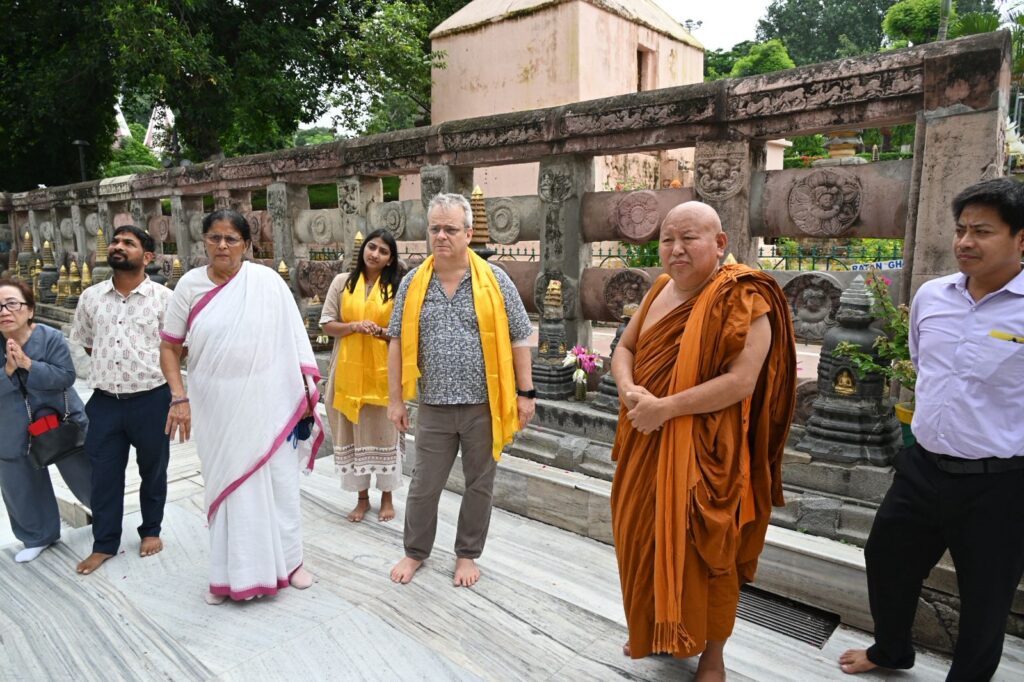 During the visit, Mr. Curtis toured all the Seven Weeks’ Sites associated with Lord Buddha’s enlightenment, the Sanctum Sanctorum on the first floor, and the Holy Bodhi Tree. He showed keen interest in the unique archaeological features of the Temple and the conservation measures being undertaken to preserve the sanctity and architectural integrity of this UNESCO World Heritage Site.